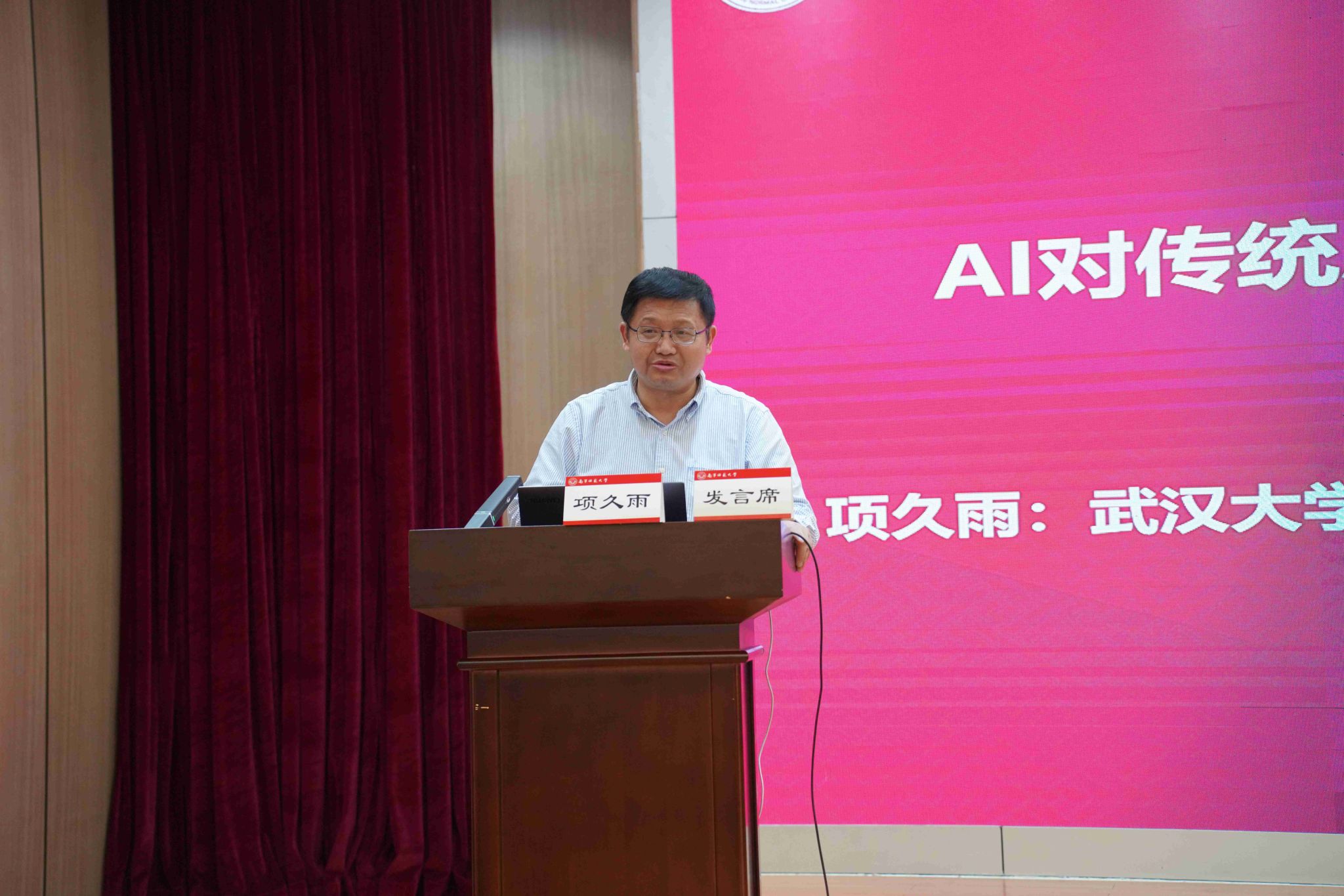项久雨教授以“AI对传统思想道德教育模式的解构与重构”为题作了主题报告。项教授指出,传统思想道德教育模式,教师是课堂主体、实践性不强、评价缺乏动态性、优质教育资源分配不公等特征,需要从静态性教育、经验性评价、封闭化体系等方面进行解构,从自适应性的教学模式、虚实融合的沉浸体验、多维整合的动态评价、开放互联的共生环境等方面进行重构。新时代思想道德教育,需要走向技术向善、包容、普惠、弥补鸿沟、人本化的数字思想道德教育。