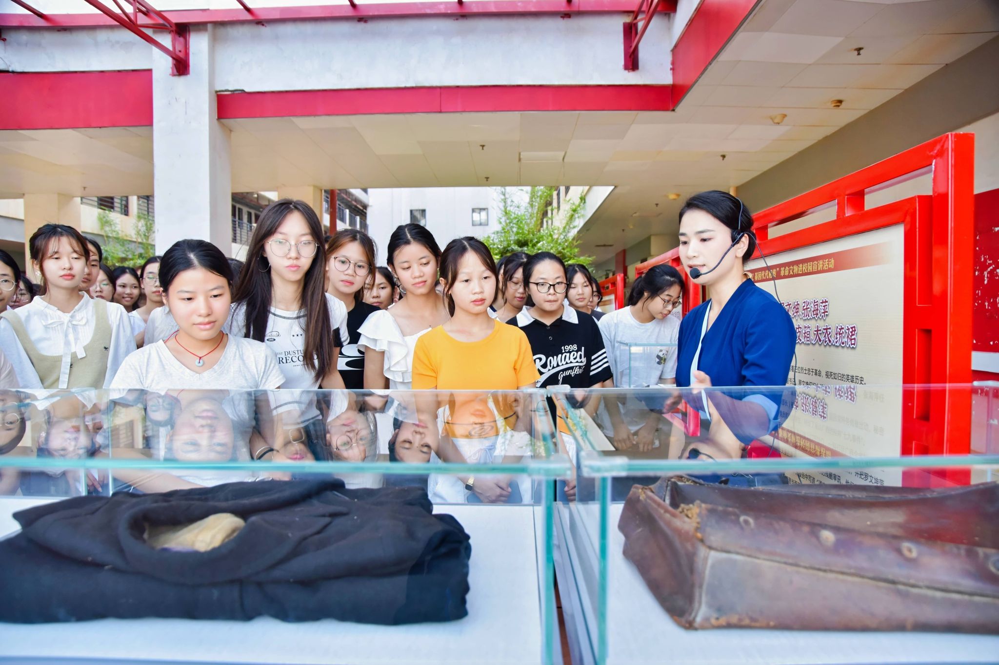 活动现场,来自广西壮族自治区烈士陵园(广西革命纪念馆)的资深讲解员,以饱满的热情和真挚的情感,向师生们详细介绍了陈勉恕烈士穿过的羊绒背心、林景云烈士“最后的党费”、吴有仁草稿写字笔记本、酒海井棕绳、解放广西军号等珍贵的革命文物。讲解员不仅生动描绘了每一件革命文物的历史背景,还深入挖掘了它们背后的感人故事。这些故事如同一部部生动的历史教科书,让师生们在聆听中深刻感受到了先烈的伟大精神和崇高的革命风范,进一步推动了革命文物与“大思政课”的深度融合。