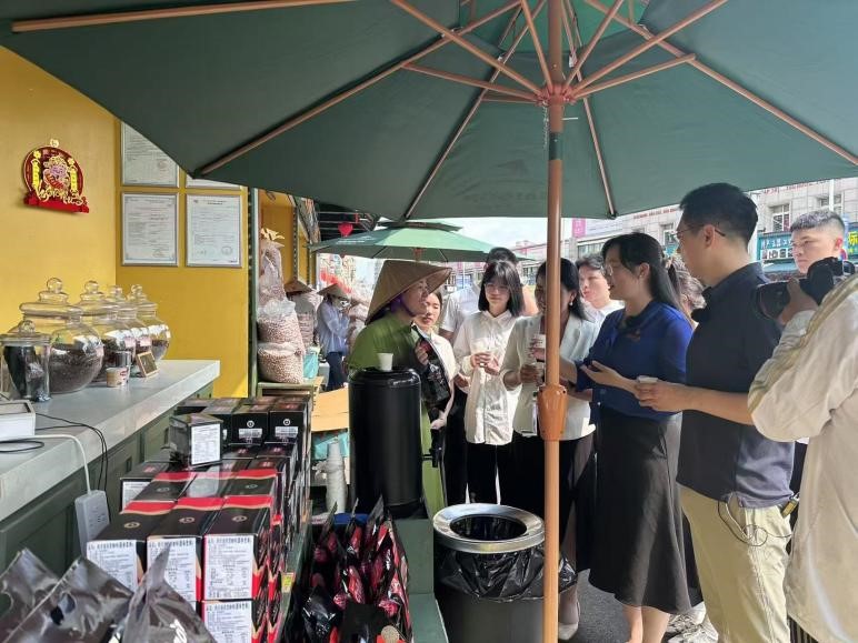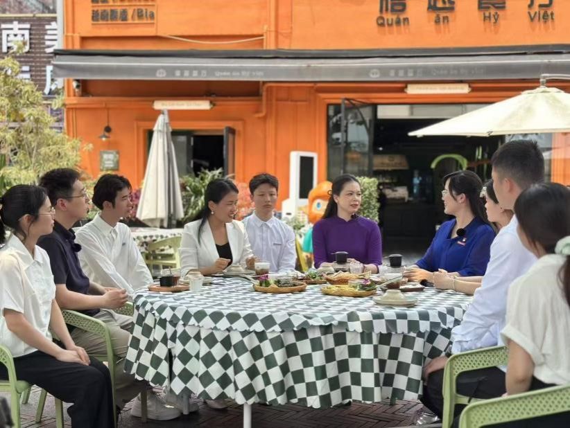 冯舒讌老师以《国门下的繁荣——中越命运共同体》为主题,带领大家与餐厅经营者、商铺售货员、展馆讲解员进行深入交流。在禧越餐厅,餐厅主人热情地与我们分享了中越饮食文化交融的故事;在国门街,经营者们忙碌的身影展现着边境贸易的繁荣景象;在侨批馆,一件件承载着老一辈海外侨胞创业史与家国情怀的文物,诉说着中华民族讲信誉、守承诺的优良传统。冯老师结合当地实际,生动讲述了中越两国在经贸合作与文化交流等方面的互联互通,让师生们深刻理解了习近平总书记4月14日访问越南时所强调的“构建具有战略意义的中越命运共同体,是历史的选择,是人民的选择”的深刻内涵。