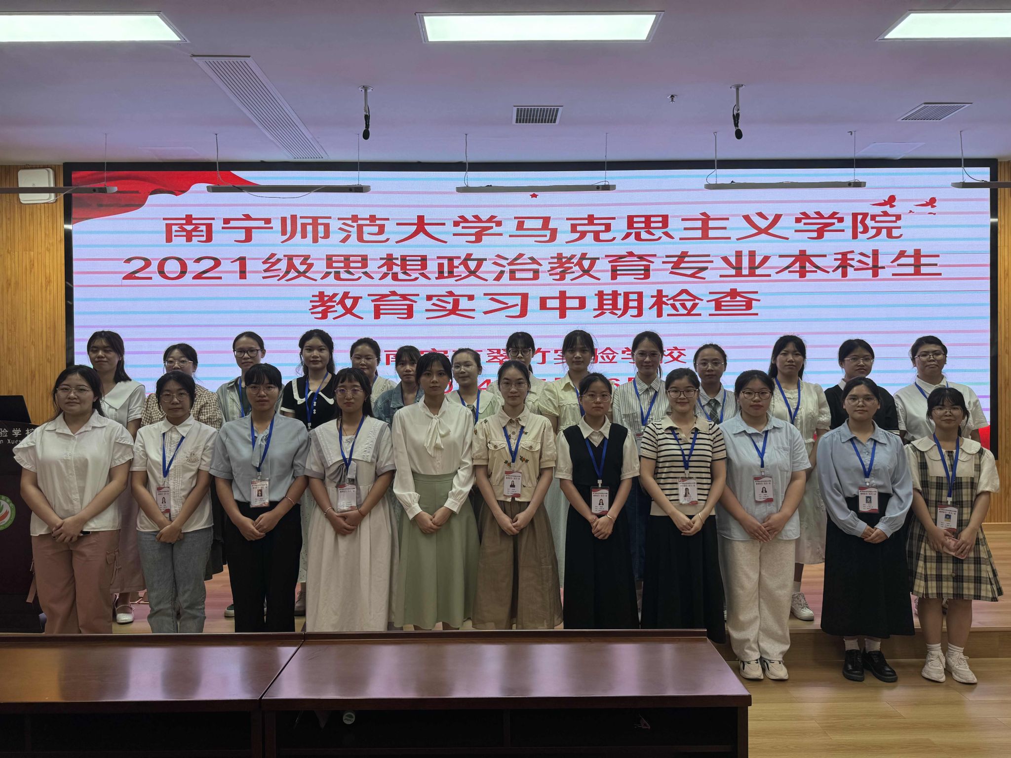 马克思主义思想政治教育专业2021级学生共204人进行了为期两个多月的教育实习,本次实习在北海市北海中学、北海市北海七中、柳州市钢一中学、柳州市前茅中学、柳州市民族高中、南宁市仙葫学校、南宁市翠竹实验学校,南宁市明天学校、南宁市邕武路学校九所区内中学进行。截止2024年5月25日,2021级思想政治教育专业一、二、三班以及专升本班的同学们圆满完成各项实习工作,2021级思想政治教育专业陶行知实验班将于6月14日结束实习工作。