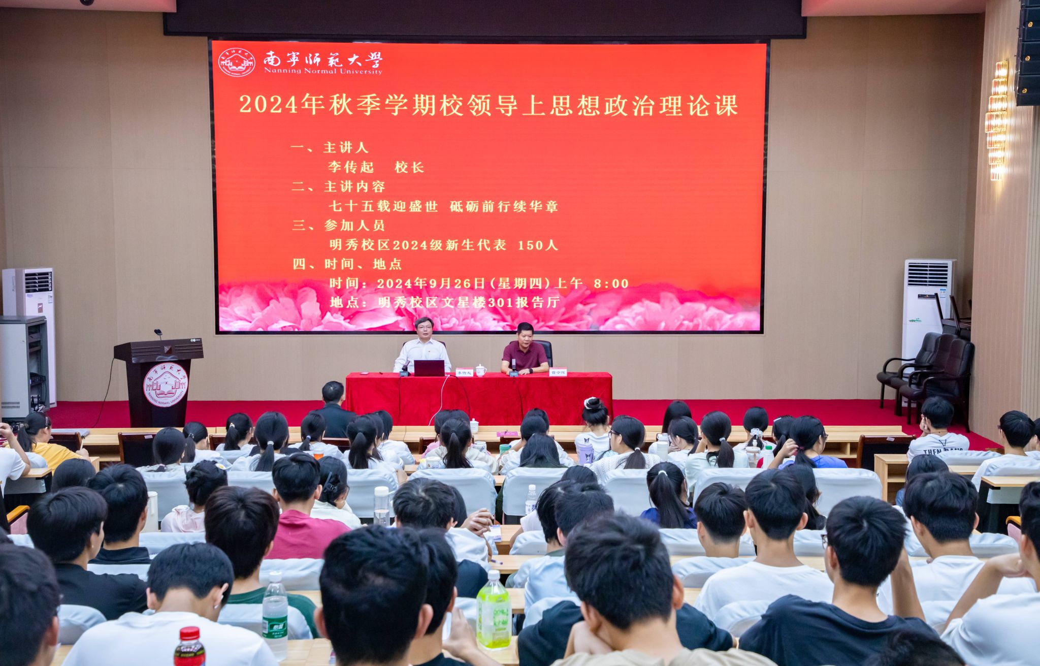 为深入推进“大思政课”建设,落实立德树人根本任务,把思想政治教育贯穿人才培养全过程。9月26日上午,李传起校长以“七十五载迎盛世砥砺前行续华章”为题,讲授2024年秋季学期“大思政课”。明秀校区各学院新生代表在文星楼301报告厅听课。本次“大思政课”由 情趣内衣