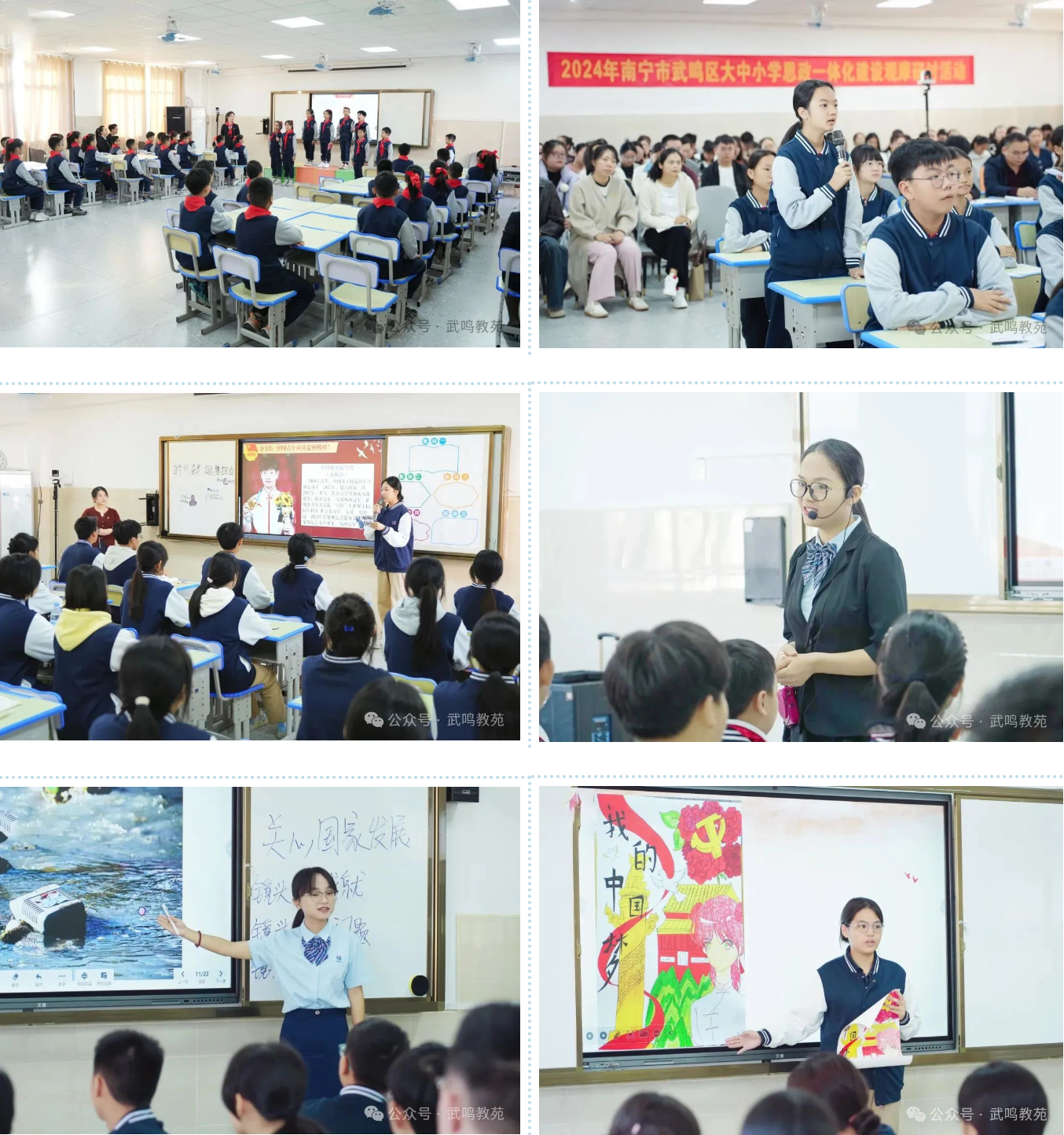 共同主办的南宁市武鸣区大中小学思政课一体化建设观摩研讨活动,顺利在武鸣区大家育才未来学校举办。本次活动的主题是“立德树人 同心共筑中国梦”,活动以课堂为阵地,通过观摩课、评课议课、专家讲座等载体的观摩研讨活动,加强“大思政课”课堂教学、交流与学习,助推武鸣区“大思政课”建设水平。