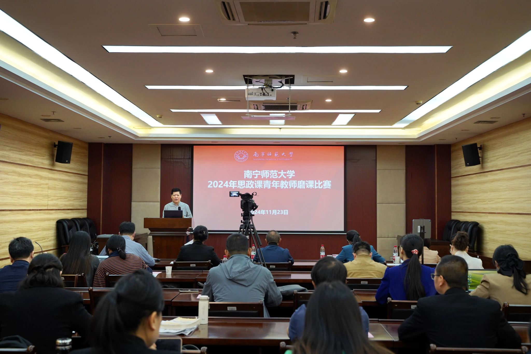 院长曾令辉教授在比赛前致辞,他希望通过本次比赛,夯实思政课青年教师教学基本功,进一步提升思政课教师的教学水平。