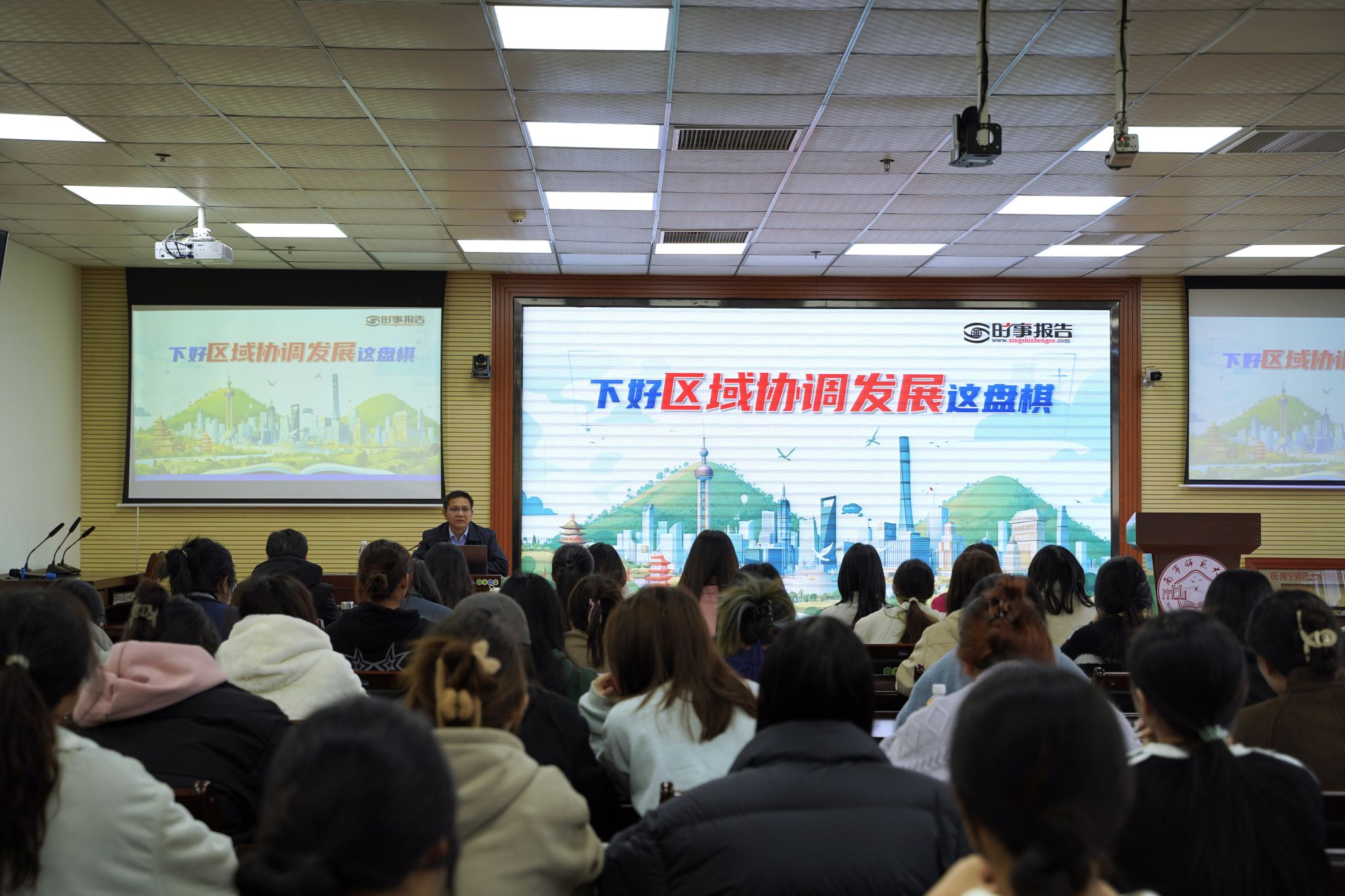师生上专题为“下好区域协调发展这盘棋”的思想政治理论课。