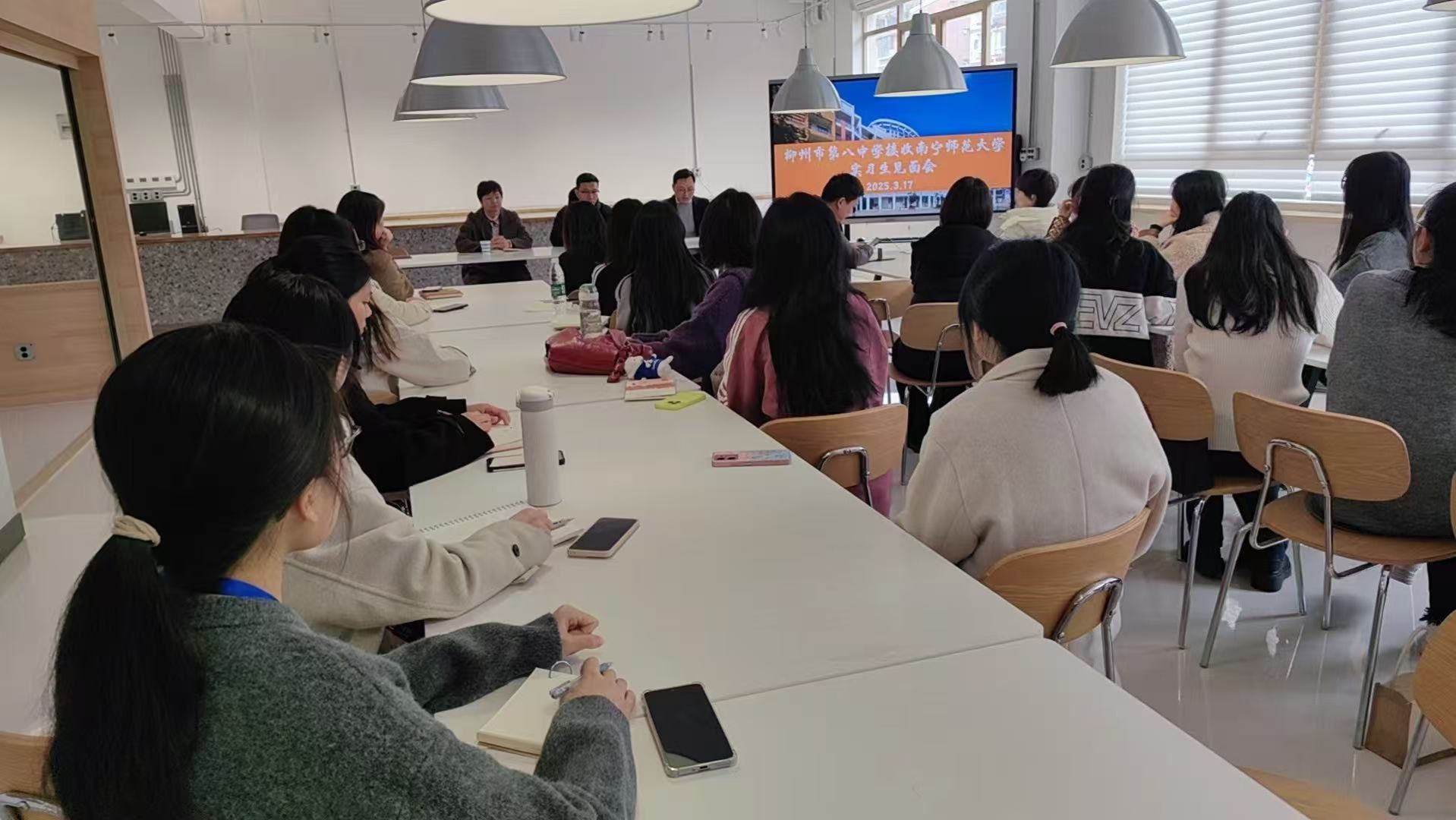 在实习学校师生见面会上,学院领导对各合作单位长期以来在师范生培养方面给予的大力支持表示衷心感谢,并对实习生提出具体要求:一要明确双重角色定位,既做虚心求教的学习者,也要当好教书育人的践行者;二要创新教学实践路径,将社会主义核心价值观有机融入课堂教学与班级管理,提升思想政治教育的吸引力和实效性;三要严守师德规范,在备课授课、师生互动等环节中始终贯彻立德树人的根本任务,做到言传身教。各实习学校负责人表示,将建立“双导师制”培养体系,在教学实践与班级管理的双线指导中深化校际协同育人。