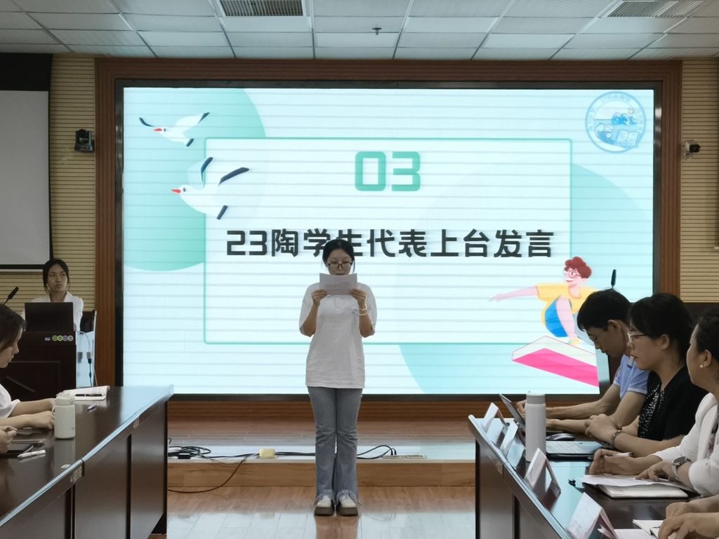 首先,王卫国副院长详细阐述了陶行知实验班的设立目的、历史与成效,期望同学们能够精准定位自身角色,科学规划学业发展路径,以昂扬向上的姿态积极迎接未来的机遇与挑战。学生代表刘泳秀代表全班同学表示,2023级思想政治教育专业陶行知实验班的全体同学将充分利用这一优质平台,努力成长为“忠诚担当、包容创新、服务奉献”的优秀思想政治教育工作者,为教育事业的发展添砖加瓦。胡咚老师和温向莉老师等还和同学们进行了积极互动。最后,李玲书记从坚定理想信念、夯实专业基础、强化实践创新等多个维度,对2023级思想政治教育专业陶行知实验班的同学们提出了殷切期望,鼓励大家以陶行知先生“教学做合一”的教育理念为行动指南,不断夯实专业能力,勇敢肩负起时代赋予的使命。