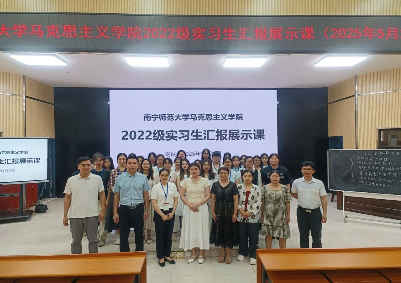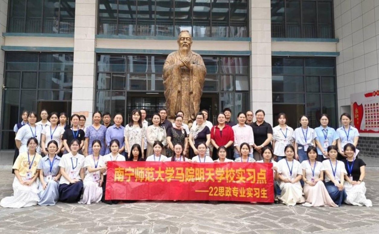 思想政治教育专业2022级本科生圆满完成了教育实习的实践工作。本次教育实习在北海市北海中学、北海市第七中学、柳州市钢一中学、柳州市前茅中学、柳州市第八中学、柳州市第二中学、南宁市青秀区荔英中学、南宁市智兴路初级中学、南宁市明天学校等自治区内九所中学进行。