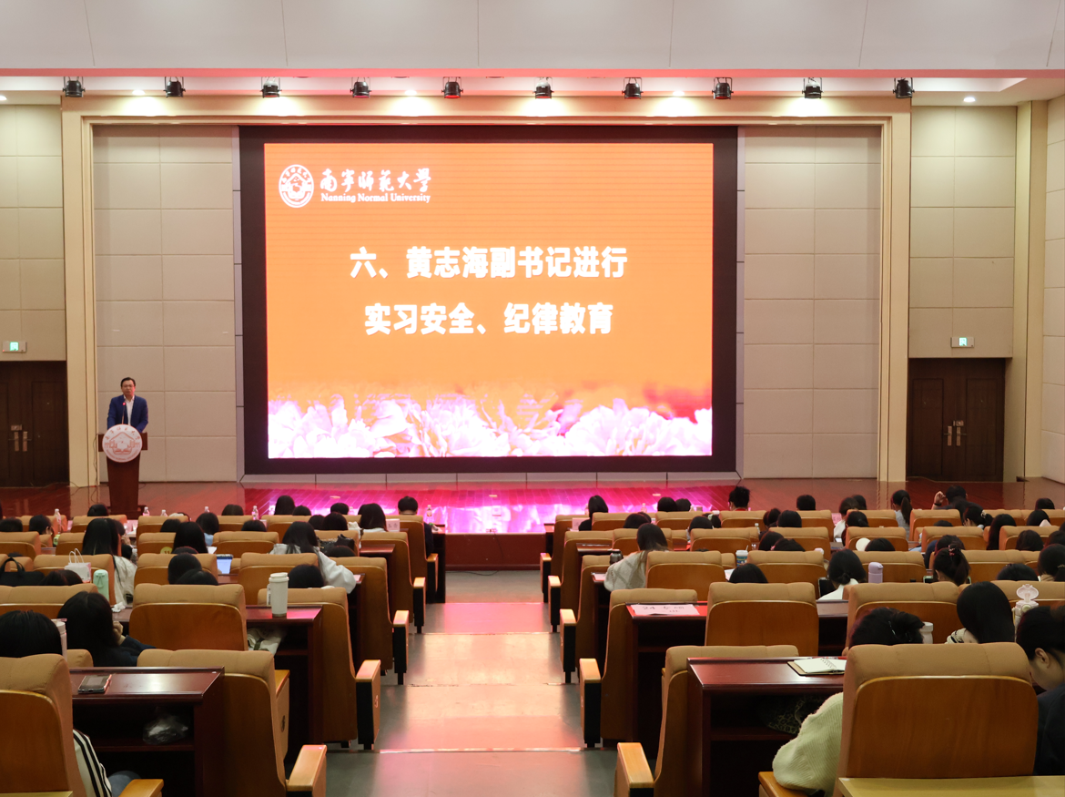 党委副书记黄志海开展实习安全与纪律教育。他从人身安全、财产安全、交通安全、用电安全等方面做出提醒,要求同学们增强安全防范意识,遵守实习学校的规章制度,自觉维护学院形象。他强调,实习期间务必严格按照学校规定履行相关手续,确保实习工作安全、有序、规范推进。