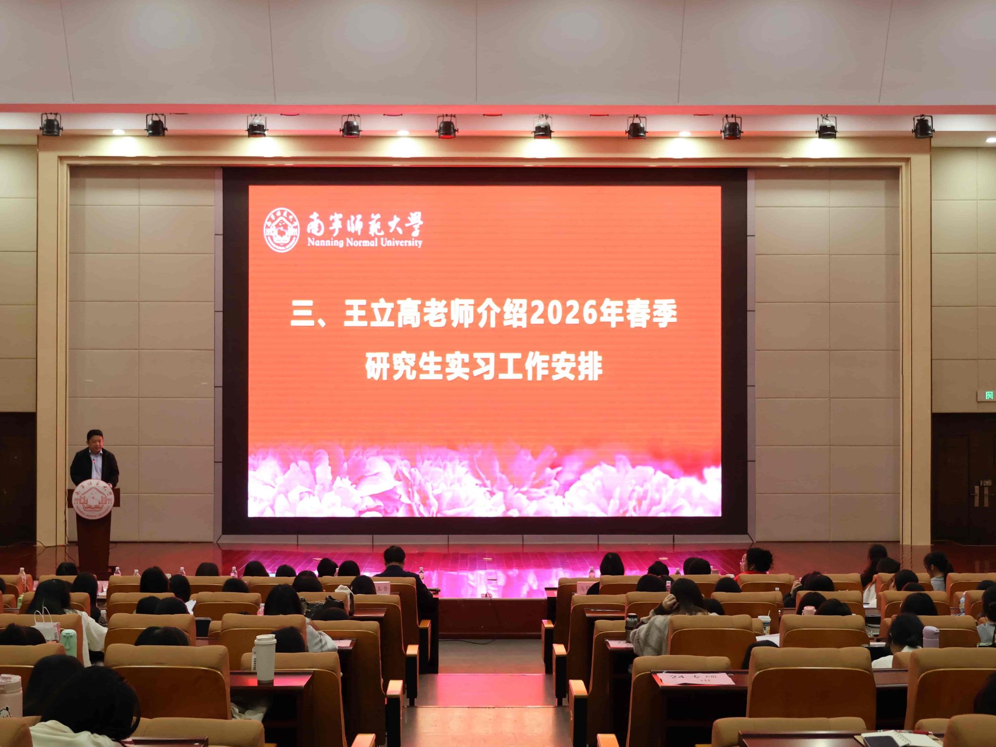 王立高老师介绍了2026年春季学期研究生实习工作安排。他结合研究生培养目标,鼓励同学们发挥专业优势,在实习中深化理论认识、提升实践创新能力,以扎实的学识和严谨的态度展现 情趣内衣