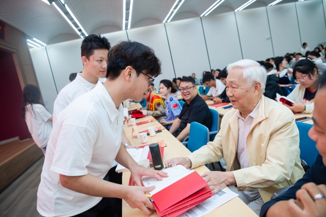 随后,“专业第一课”在华中师范大学科学会堂正式拉开帷幕。作为思想政治教育专业创始人之一的张耀灿先生围绕思想政治教育专业的创立背景、学科内涵以及发展前景,紧密结合“当代大学生应当如何学习、成为怎样的人才”这一核心问题,系统阐述了学科发展历程与时代使命,引导学生坚定专业信仰。王忠文教授从教学实践与育人使命角度,生动阐释了思想政治教育“知信行合一”的教学方法。武汉出入境边防检查站勤务辅警张静雯同志分享了她在军营中历经磨砺的动人故事,以及入选中国人民抗日战争暨世界反法西斯战争胜利80周年阅兵式女民兵方队过程中所遭遇的困难与收获的深刻感悟。她以自身的经历鼓励青年学子们要锤炼钢铁般的意志,培养顽强的毅力,勇敢追逐梦想。