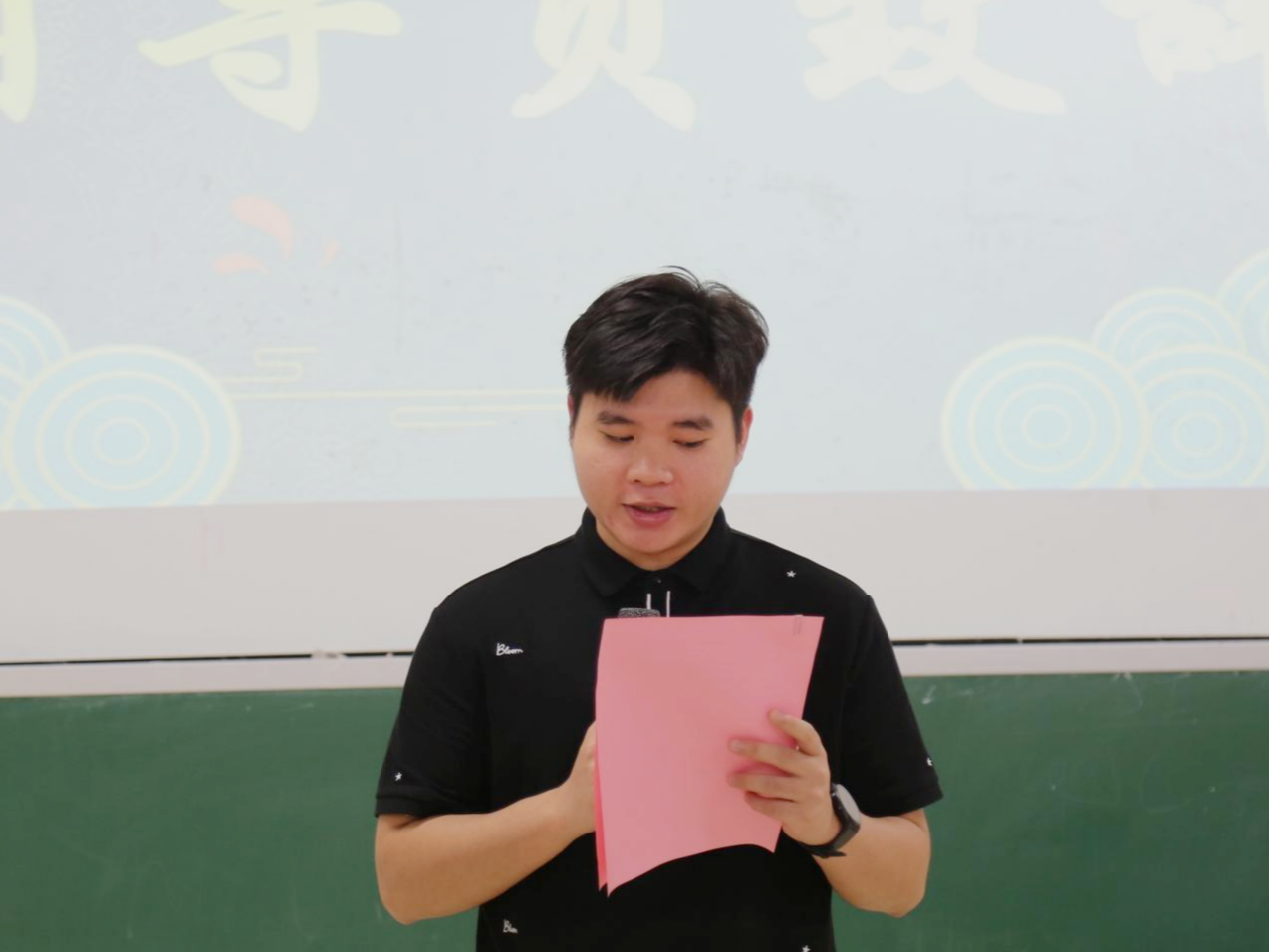 2024年中华经典诵读大赛院级初赛。出席此次大赛的人员有辅导员黄业毅、兼职辅导员黄露丝、办公室负责人潘洁华、宣传部负责人林丹蕾以及大众评审和各班级代表。