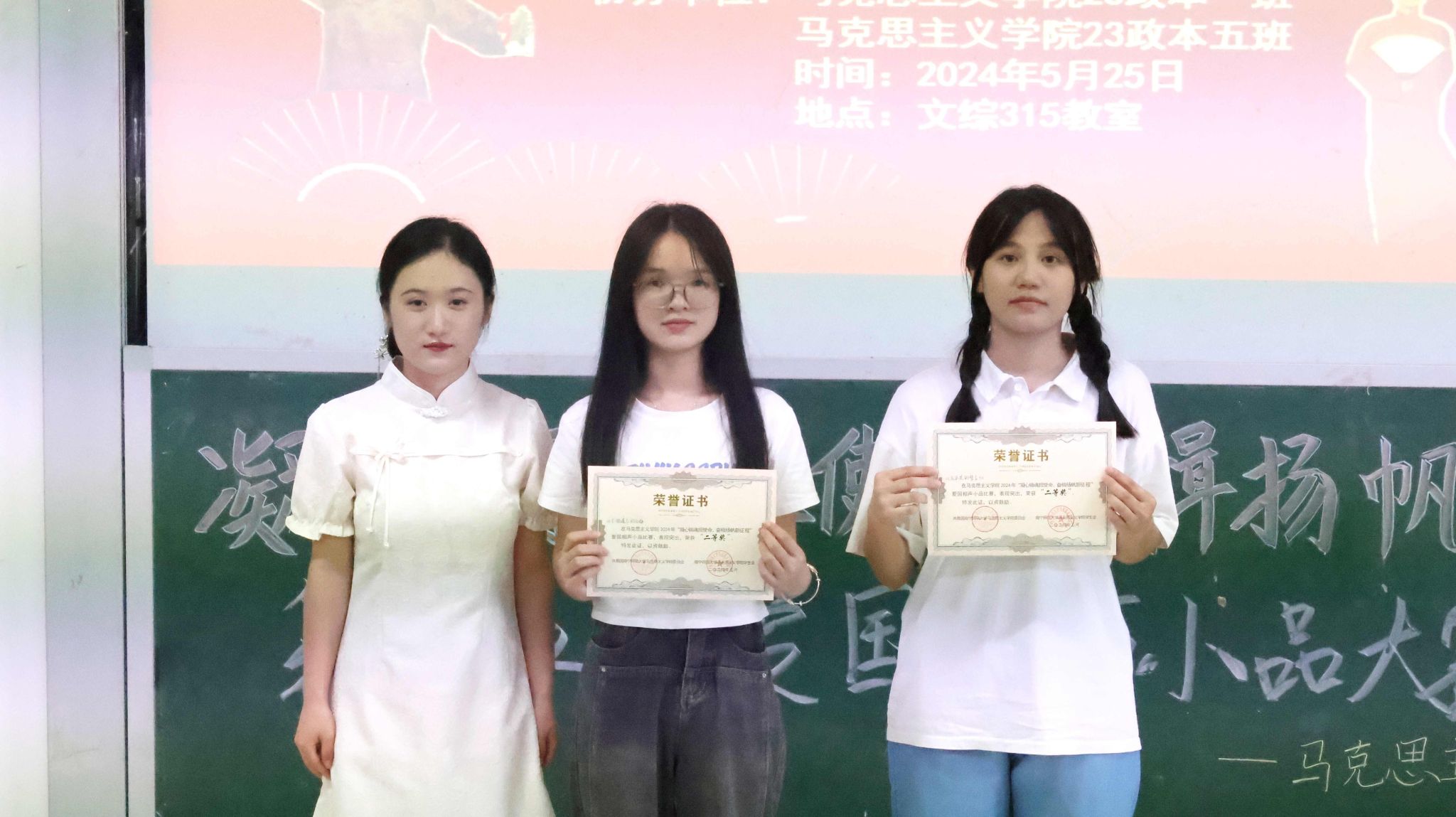比赛伊始,李夏阳老师为本次活动致辞,她期望通过此次活动,各参赛选手能充分展示自己的才华与风采。比赛过程中,参赛队伍紧紧围绕爱国主义主题,演绎了一个又一个生动有趣的故事,赢得了台下观众的热烈掌声。互动环节中,观众们积极抢答,现场气氛持续高涨。最后,评委骆东媛对本次比赛进行点评,她充分肯定了比赛过程中选手们展现出的优秀的团队协作和创新精神,并鼓励落后者不要因此而气馁。经过一番激烈角逐,最后,2022级思政陶班《半条被子》获得了一等奖;2023级思政四班《不能遗忘的历史》和2023级思政二班《五朵花的誓言》获得了二等奖;2022级思政三班《诸神的奥运》、2023级思政三班《我的爷爷》和2023级思政五班《英雄赵一曼》获得了三等奖。