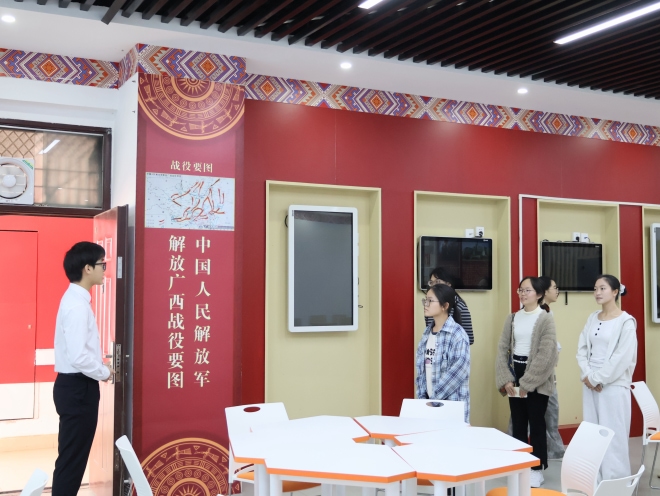 活动伊始,艺术团合唱《我和我的祖国》以悠扬旋律拉开帷幕,嘹亮歌声里满是青春朝气。接着,主持人详细介绍活动流程并组织合影留念,定格下跨院交流的美好瞬间。大家在主持人带领下参观学院各类场馆设施,马克思主义理论教育广场、党史育人画廊、科学社会主义发展史教育馆及广西新时代爱国主义教育虚拟体验中心、湘江战役虚拟仿真实验中心等,丰富实用的设施全方位展现着学院建设的扎实成果。自由参观环节中,嘉宾们兴致勃勃地自主体验探索,在VR等先进设备的互动中,马克思主义理论变得可感可触。最后,红色知识有奖问答将活动氛围推向高潮,多轮抢答互动里,大家在重温红色知识的过程中感悟峥嵘岁月,理想信念愈发坚定。