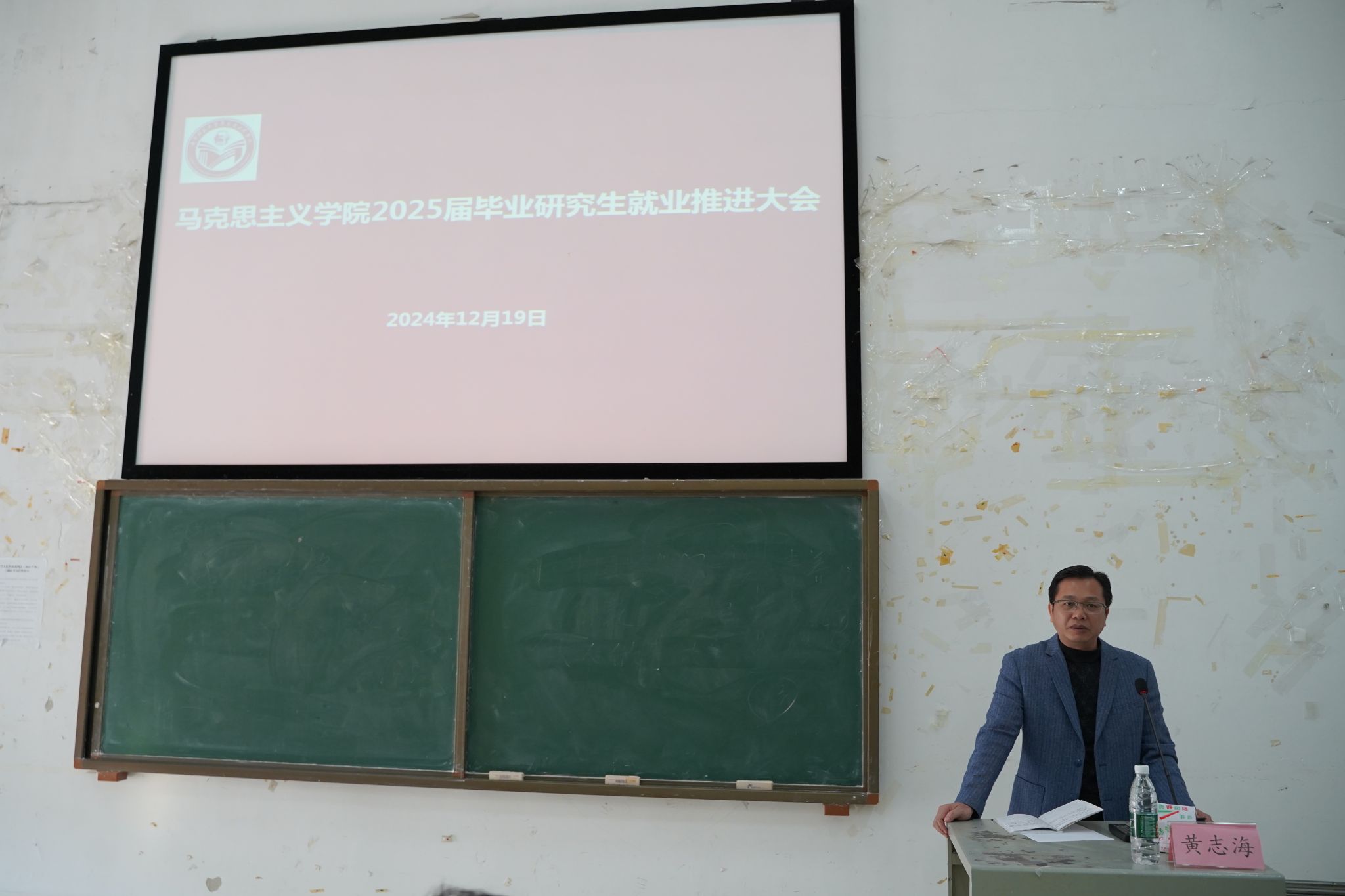 全体应届毕业生参加本次会议,学院党委副书记黄志海出席会议并讲话,专职辅导员黄业毅老师主持会议。