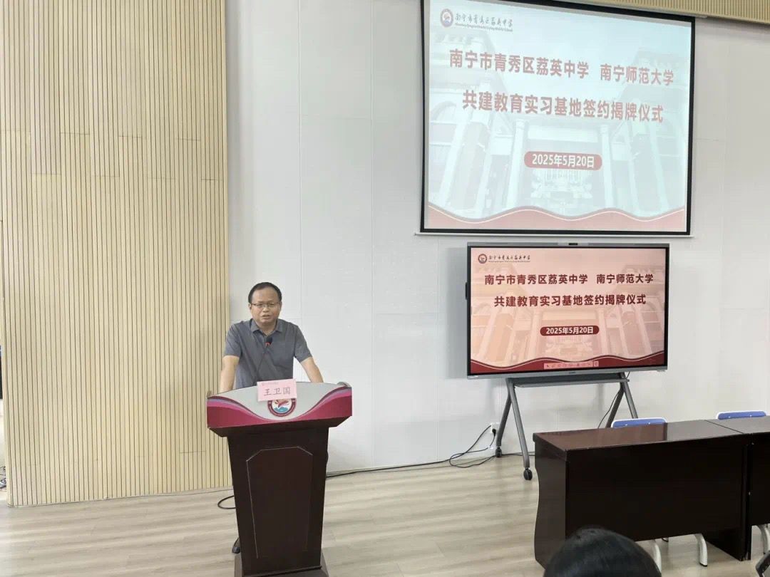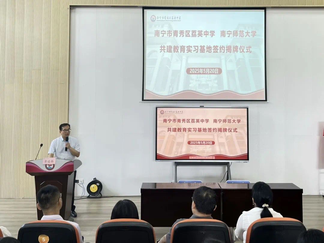 党委书记李玲、副院长王卫国以及学院教师代表赴南宁市青秀区荔英中学开展教育实习基地授牌暨访企拓岗促就业活动。