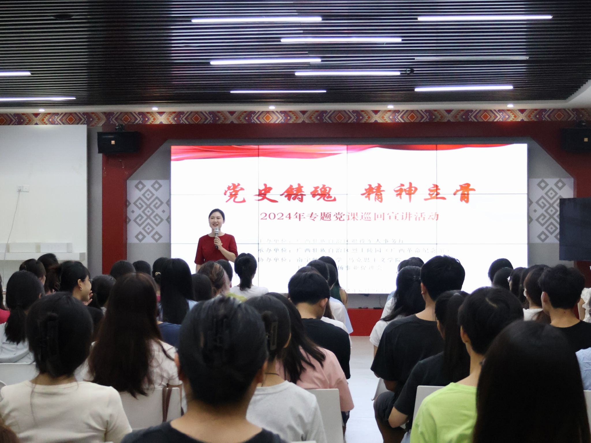 于2024年6月26日在8栋b座208报告厅开展了“党史铸魂,精神立骨”为主题的专题党课宣讲活动。本次课程的主题是“星火初照:中国共产党早期组织在广西的建立”,由韦江丽老师主讲。