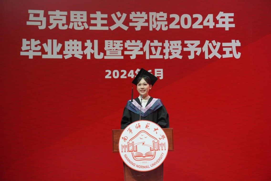2021级马克思主义中国化研究专业硕士研究生姜凯博和2020级思想政治教育专业本科陶行知实验班潘嘉瑜分别代表研究生和本科毕业生发言。他们回顾了在南宁师大 情趣内衣