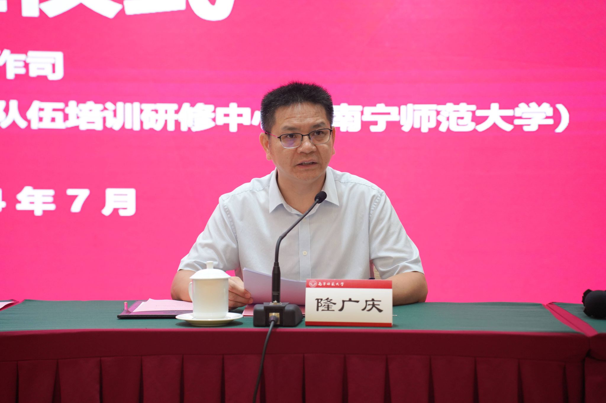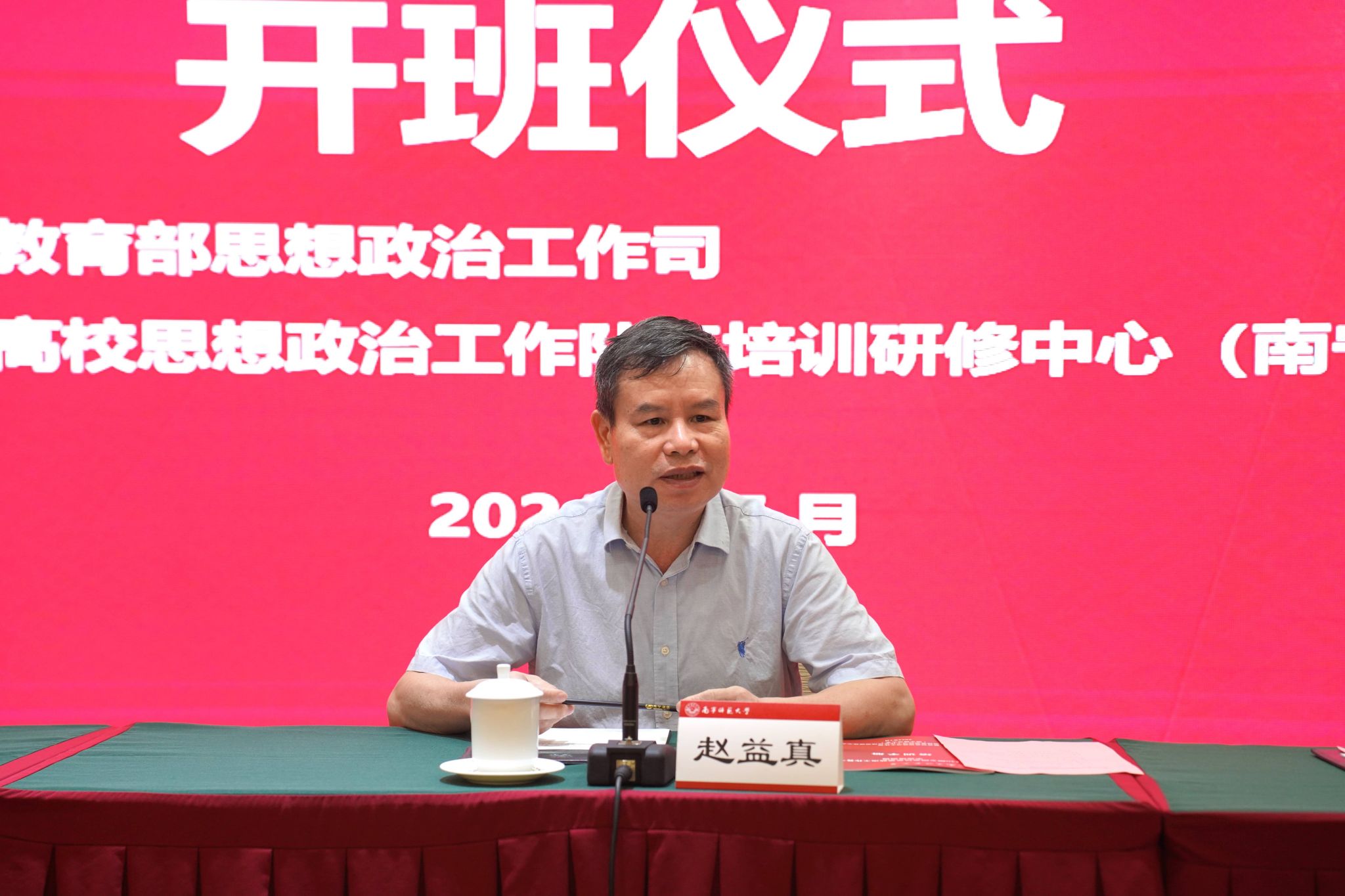 开班仪式上,自治区教育厅思政处主要负责同志介绍了广西高校辅导员队伍建设情况。一是严格按标准配足配齐高校辅导员,把落实这项指标的情况列入督查内容,纳入高校党委书记的党建述职报告;二是完善评价和激励机制,落实辅导员岗位津贴,推进实施辅导员“双线”晋升,加强对高校辅导员的培训,实现对新任辅导员培训的全覆盖;三是实施“广西高校思想政治教育卓越教师”支持计划,每年遴选一批包括辅导员在内的领军人物、拔尖人才和骨干教师,对入选者给予重点培养,加快思想政治工作队伍人才成长。他希望来自全国各地高校辅导员继续关心支持广西辅导员队伍的建设,并预祝本次培训班取得圆满成功。