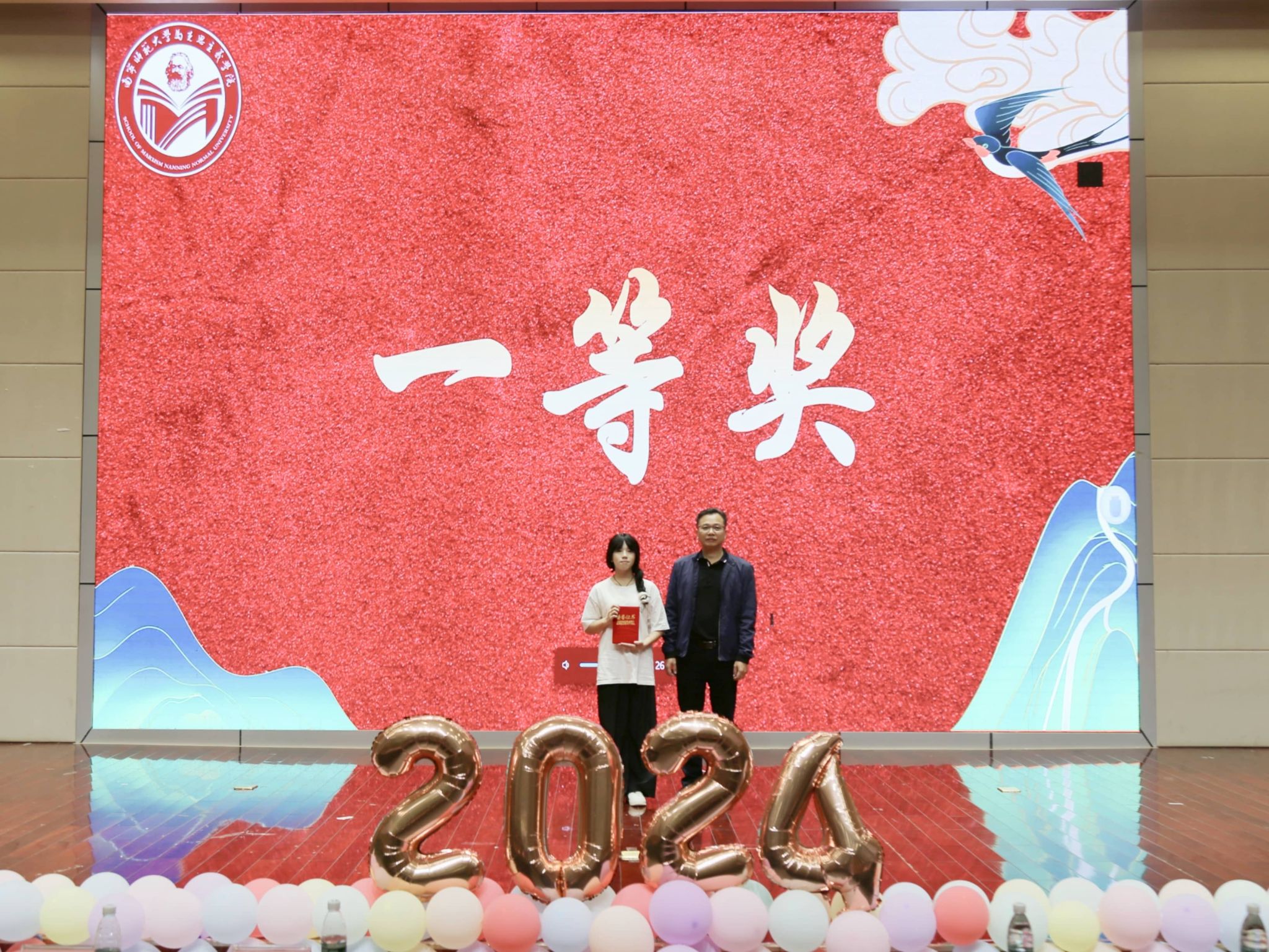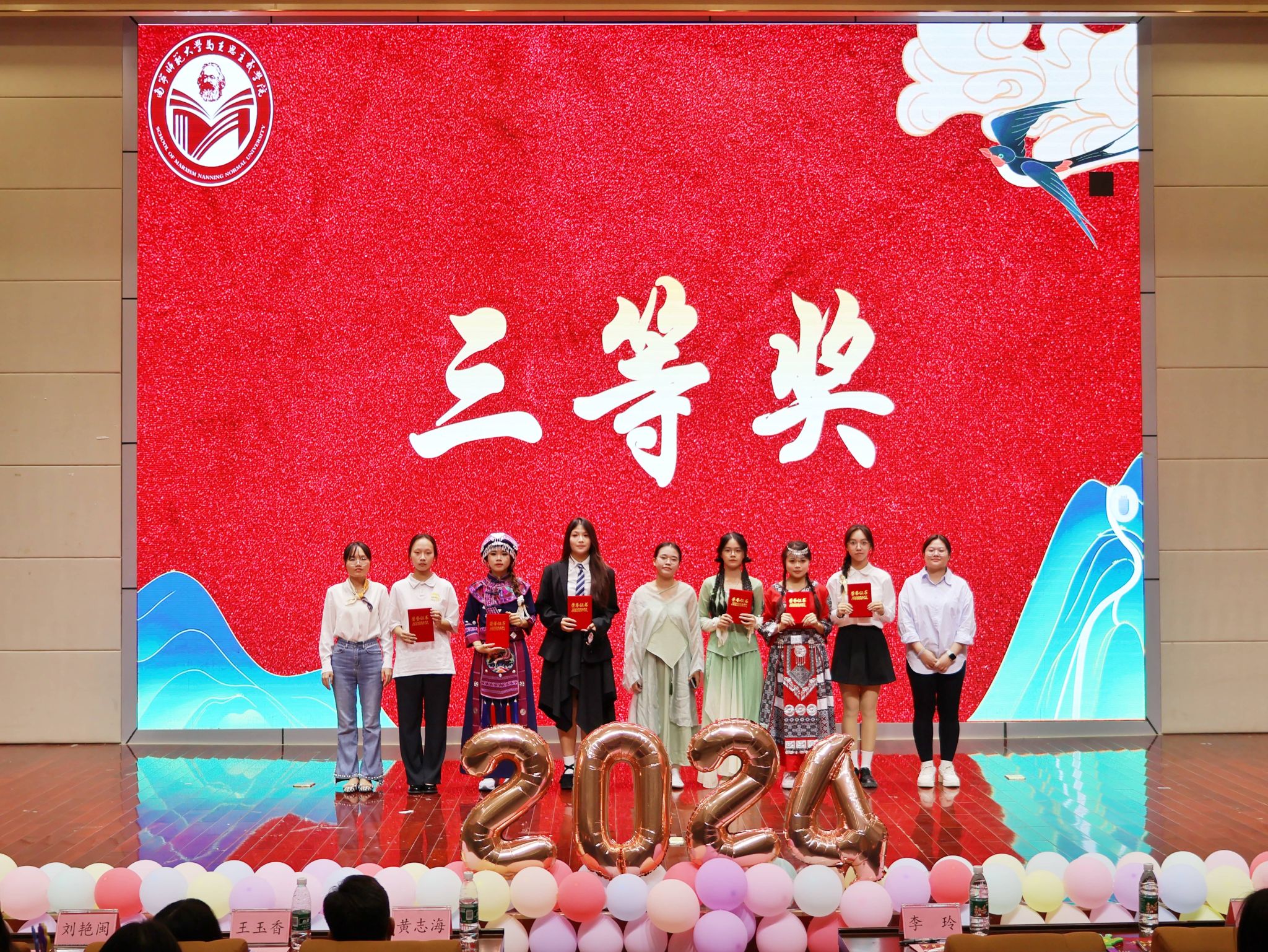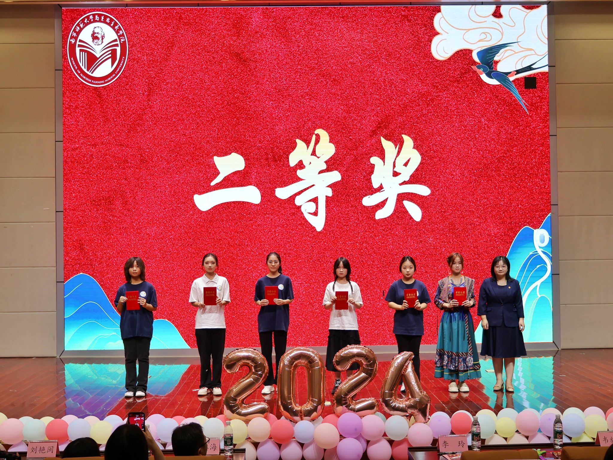 于11月10日在文综114报告厅举办了2024级新生才艺大赛决赛。出席本次新生才艺大赛的领导老师有学院党委书记李玲、党委副书记黄志海、团委书记韦旖扬、辅导员王玉香、24思政4班班主任刘艳闽、24思政5班班主任林志婷以及化学与材料学院辅导员刘杨等。各院代表、文体部负责人、24级各班助班和24级新生等也来到现场观赛。