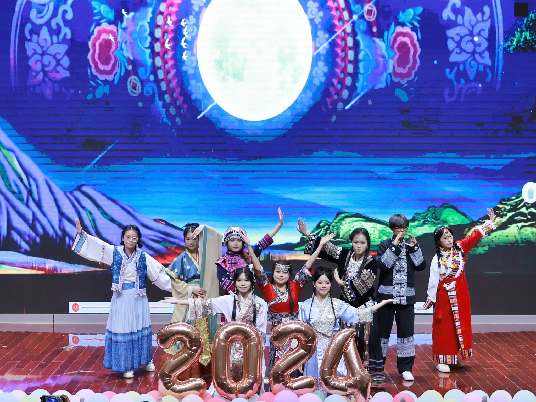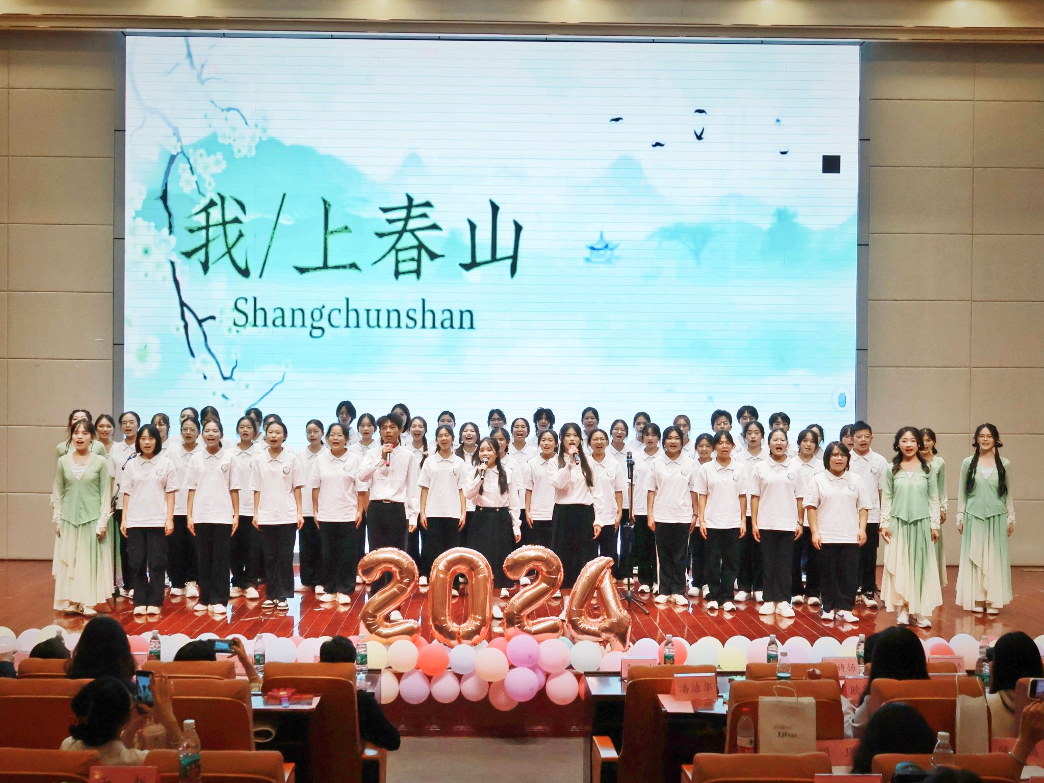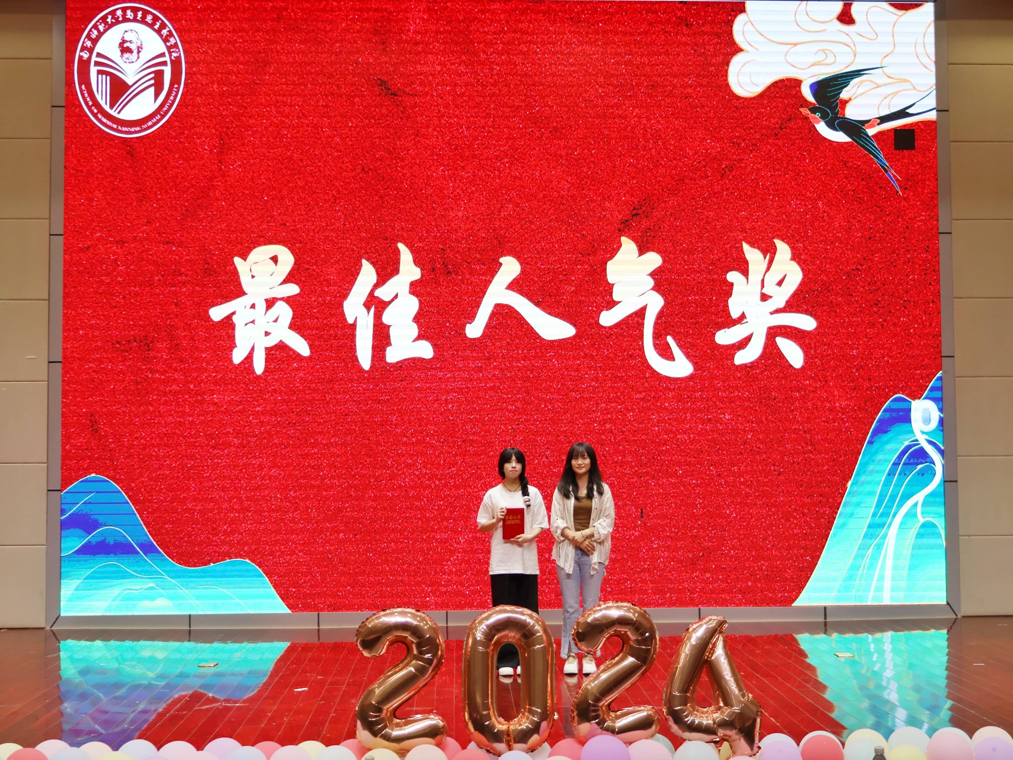 星光璀璨,本次才艺大赛精彩纷呈,新生们能歌善舞,为观众带来了一场丰富多彩的视听盛宴。其中,歌曲《虹之间》富含情感,传播了爱与希望;《我的骄傲》饱含力量,点燃了自信与坚强;舞蹈《睫毛弯弯》青春洋溢,活力四射;合唱《紫荆花盛开》旋律悠扬,激发了观众们的爱国之情;课本剧《红岩》情节紧凑,带领观众深刻感受到那段历史的红色力量。同时,助班节目《知足》表达了助班们对新生们的深情厚意。在互动环节中,观众们热情高涨,积极踊跃回答问题,将现场的气氛推向了高潮。