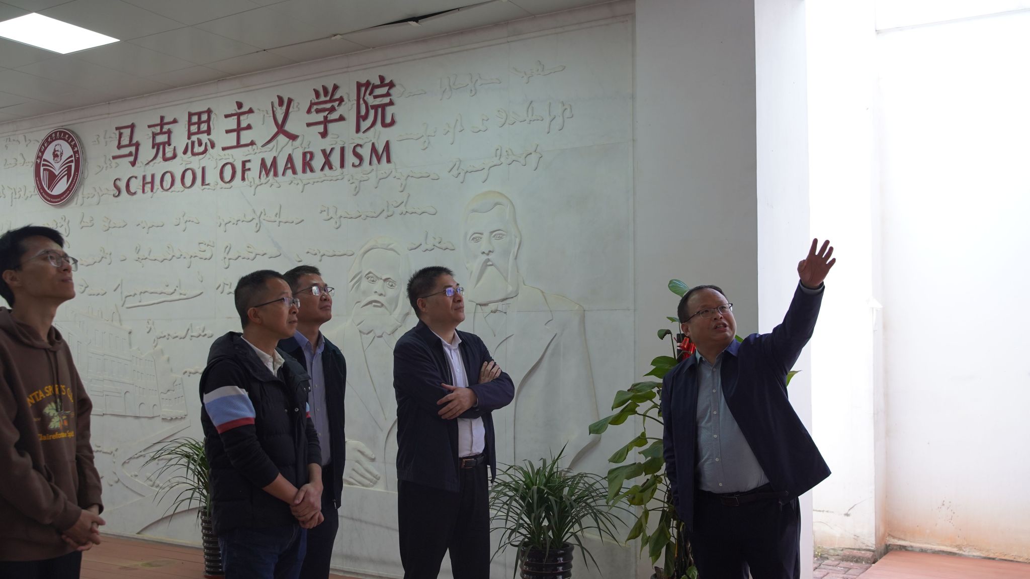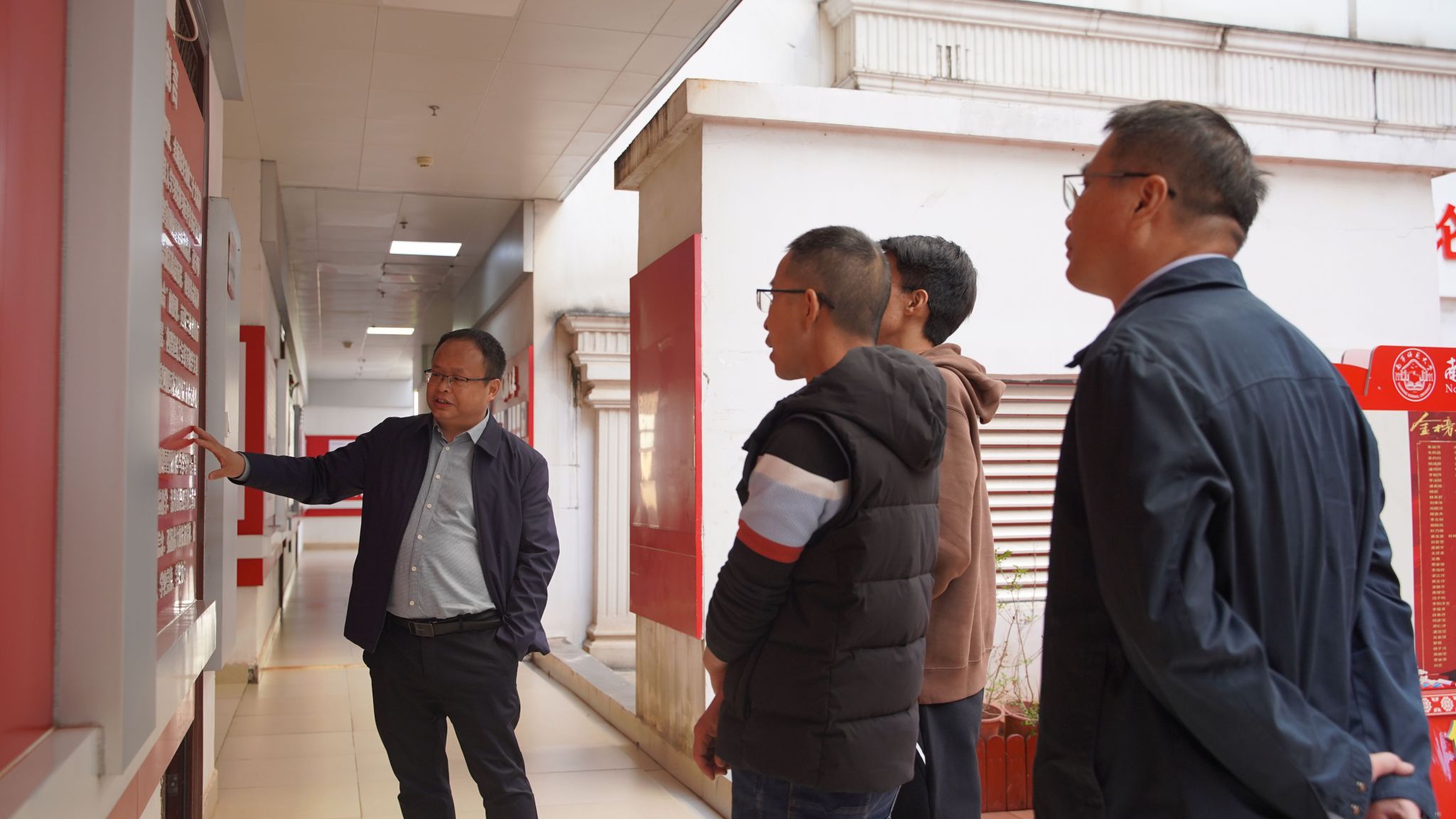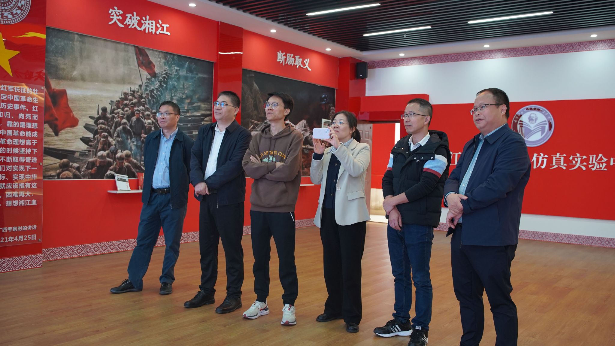 副院长王卫国、毛泽东思想和中国特色社会主义理论体系概论教研室主任周起帆老师、中国近现代史纲要教研室胡海燕老师热情接待并陪同他们参观了学院广西新时代青少年爱国主义教育虚拟仿真体验中心、党史国史育人画廊、大中小思政课一体化展示中心、湘江战役虚拟仿真实验中心、马克思主义经典阅读室、科学社会主义发展史教育馆和马克思主义理论教育广场等场馆。