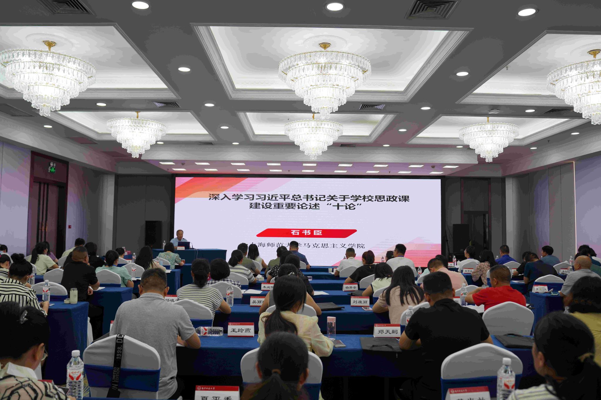 博士生导师、上海师范大学思想政治教育研究所所长石书臣教授又以“深入学习习近平总书记关于学校思想政治课建设重要论述‘十论’”为题,给学员授课。这两场报告,对大中小学思政课一体化建设作了深入的剖析与解读,既有高屋建瓴的理论引领,又有贴合实际的经验分享,让学员们深受启发,为培训班开了个好头。