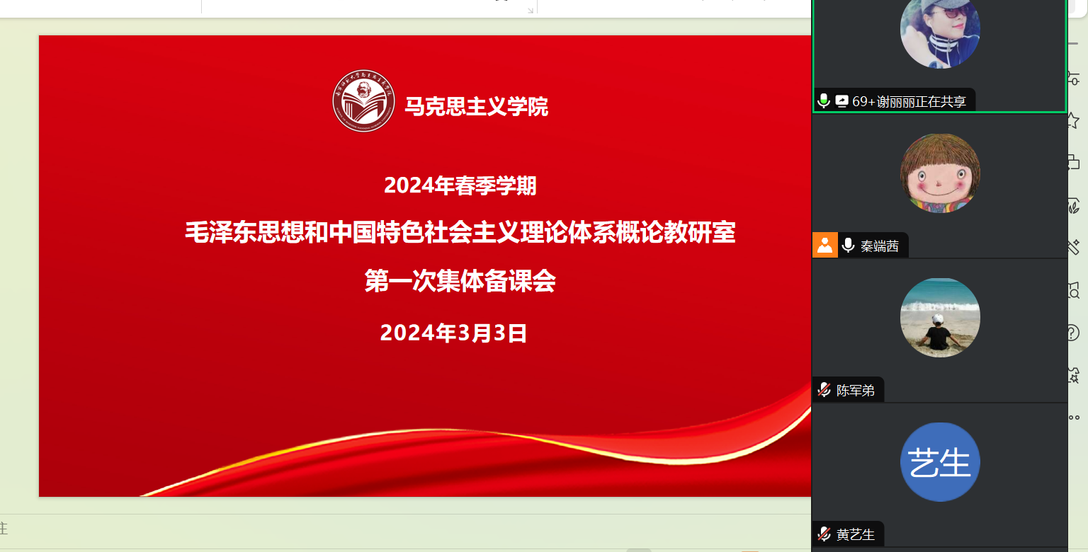 3月3日晚上,毛泽东思想和中国特色社会主义理论体系概论教研室组织了2024年春季学期第一次概论课党小组会暨集体备课会。会议由教研室主任秦端茜主持,全体专兼职教师参加。