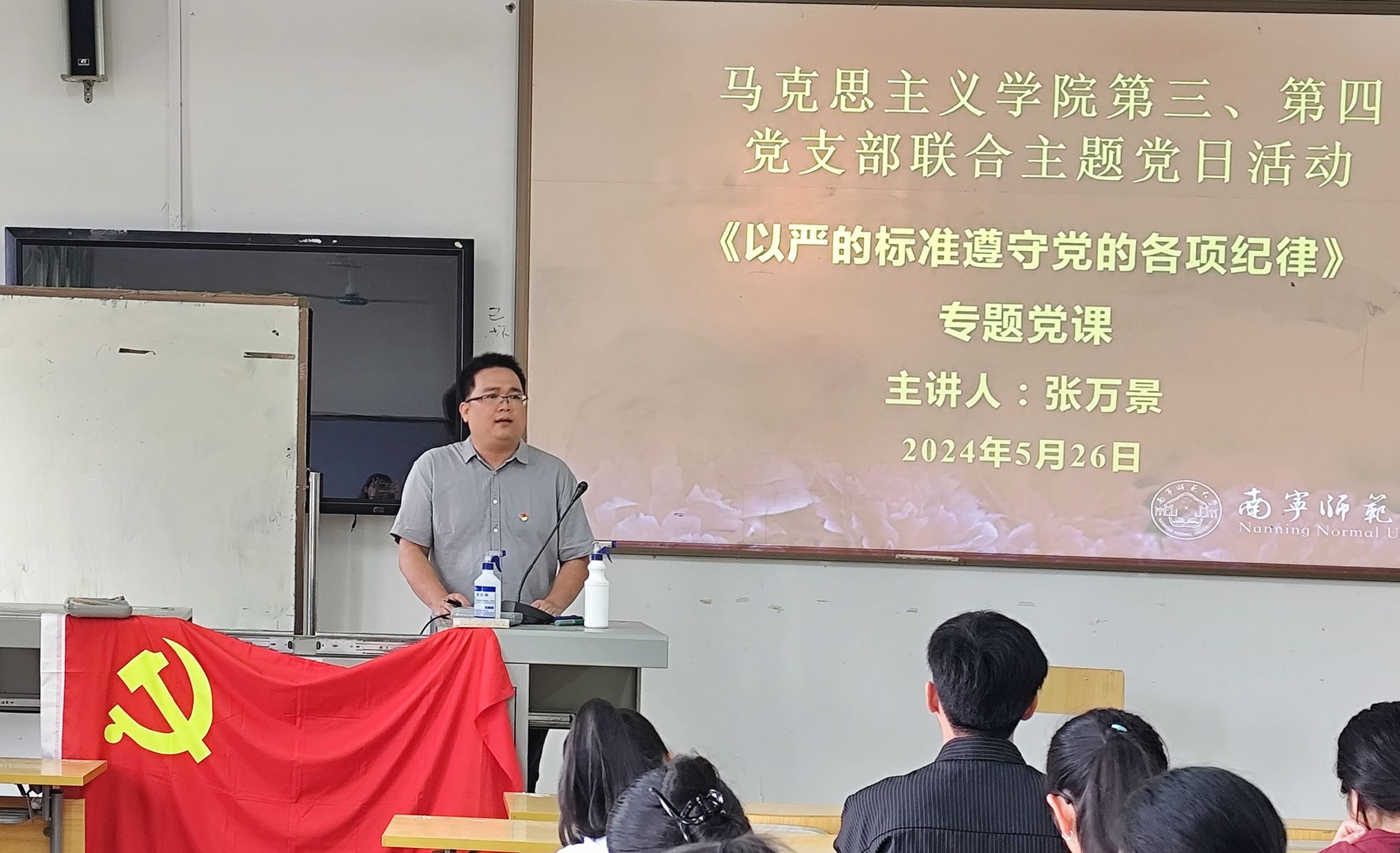 本科生第三、第四党支部于2024年5月26日下午在五合校区五综211教室开展了党支部书记讲纪律党课暨“学党纪,明底线,知敬畏”主题党日活动,参与本次党日活动的有 情趣内衣