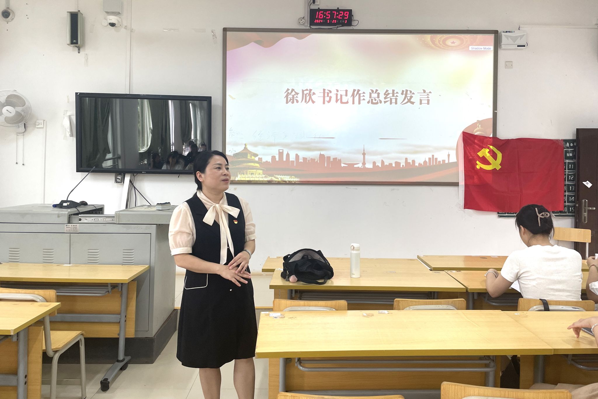 最后,支部书记徐欣老师作总结发言。她指出,支部全体成员要进一步提高政治站位,不断增强学习贯彻《条例》的自觉性和坚定性,将来无论是步入工作岗位还是在日常生活中都要不断强化底线红线意识,切实把铁的纪律转化为日常习惯和行为准绳,淡泊名利,廉洁从教,随时保持高标准、严要求,以身作则,遵规守纪。