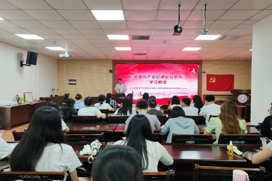 4月26日,为深入学习贯彻习近平总书记关于党纪学习教育的重要讲话和重要指示精神,培养支部党员学纪、遵纪、守纪意识,提升党员整体思想素质,学科教学(思政)专业硕士研究生第一党支部组织开展以“《中国共产党纪律处分条例》学习解读”为主题的党课学习活动。本次党课由党支部书记刘飞君老师主讲,学科教学(思政)专业硕士研究生第一党支部全体党员、积极分子参加学习。